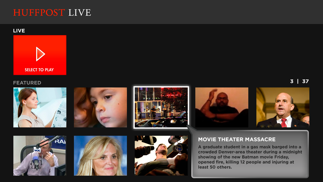 Designed specifically for tv set top boxes such as Boxee, the UI was designed with the limitations of a tv remote - based navigation in mind, particularly challenging when displaying multiple tiers of content.
